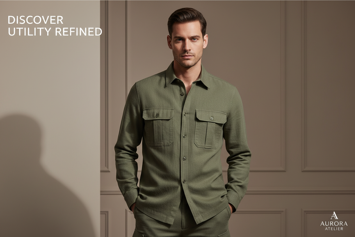 DOUBLE PATCH POCKET COTTON RFD MEHNDI SHIRT