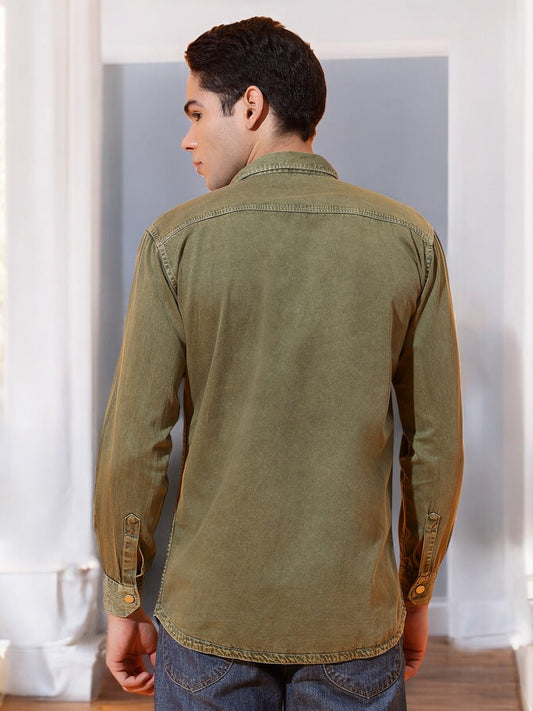 DOUBLE PATCH POCKET COTTON RFD MEHNDI SHIRT