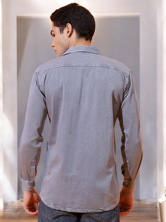 DOUBLE POCKET COTTON RFD GREY SHIRT