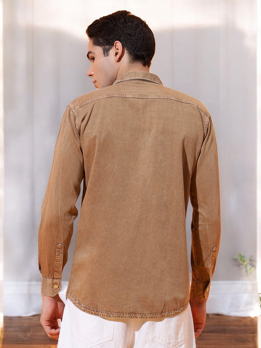 DOUBLE POCKET COTTON RFD BROWN SHIRT