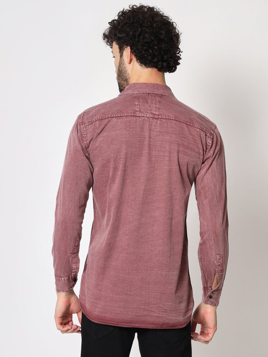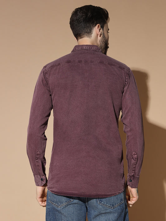 DOUBLE BOX POCKET PRINTED COTTON RFD MEHROON SHIRT