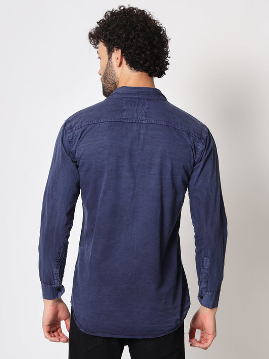 CLOUDBURST DARK BLUE DOUBLE POCKET DENIM SHIRT FOR MEN