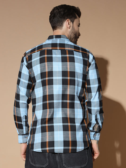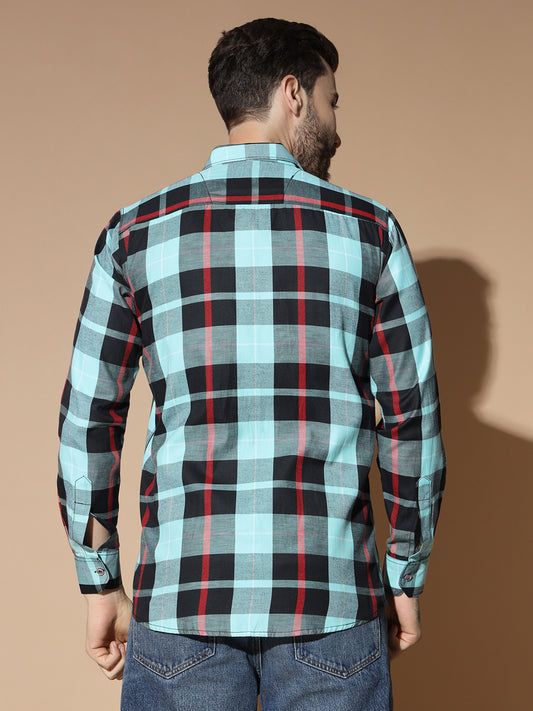 DOUBLE POCKET NEW STYLISH BLUE CHECK SHIRT
