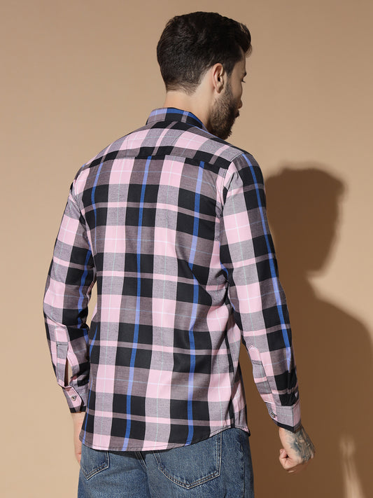 DOUBLE POCKET STYLISH PINK CHECK SHIRT