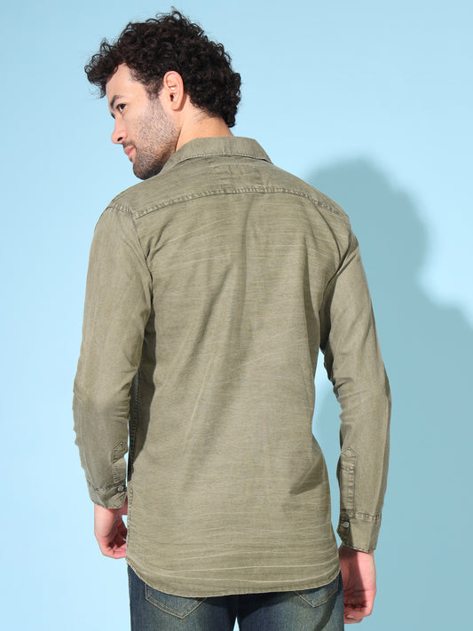 POPULAR DOUBLE POCKET SIMPLE RFD MEHNDI SHIRT
