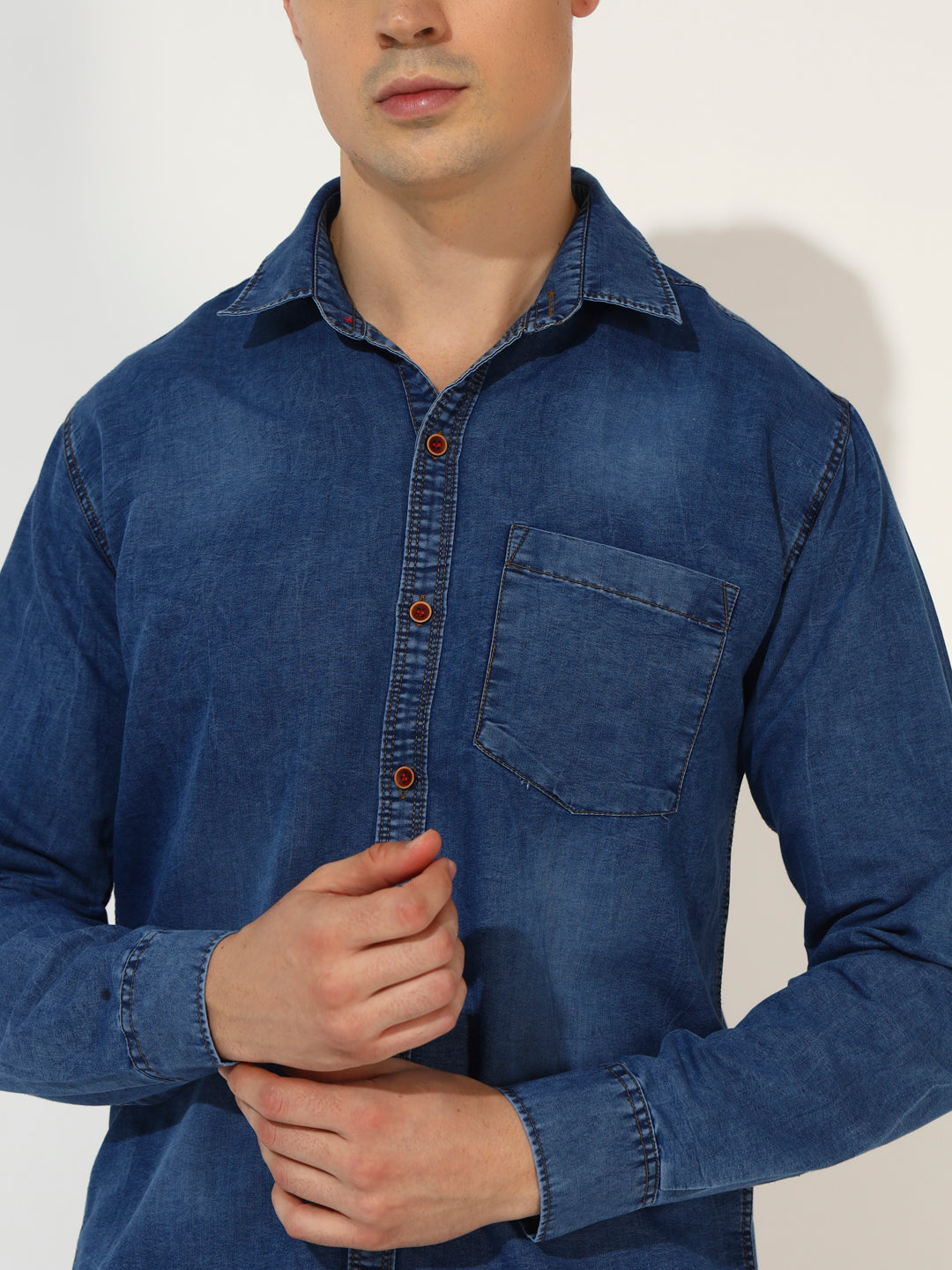Update your everyday shirt collection with this cool and normal regular fit full sleeve shirt from doubleone. regular fit lends you an easygoing look and With silky denim, comfort is no longer reserved for the weekends.